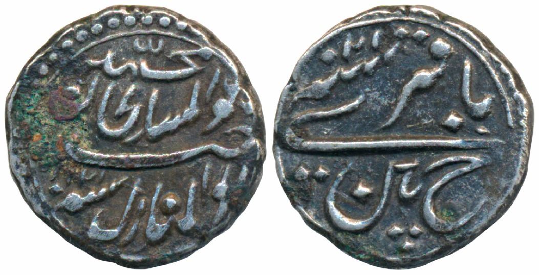 Tipu Sultan, Silver ¼ Rupee or Baqiri, 2.56g, Patan Mint, AM 1222/2 (KM D125). Very Fine, Rare.