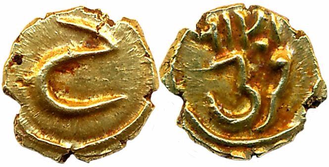 Tipu Sultan, Gold Fanam, 0.38g, Farrukhi Mint, AM 1216 retro (KM# 58). Very fine.
