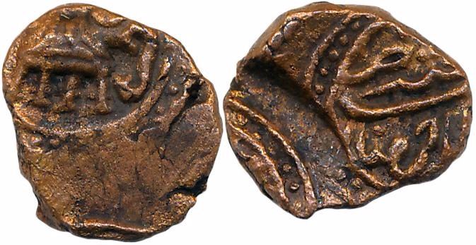 Tipu Sultan, Copper 1/4 Paisa, 2.77g, Error- Double struck on reverse. Very fine, rare.