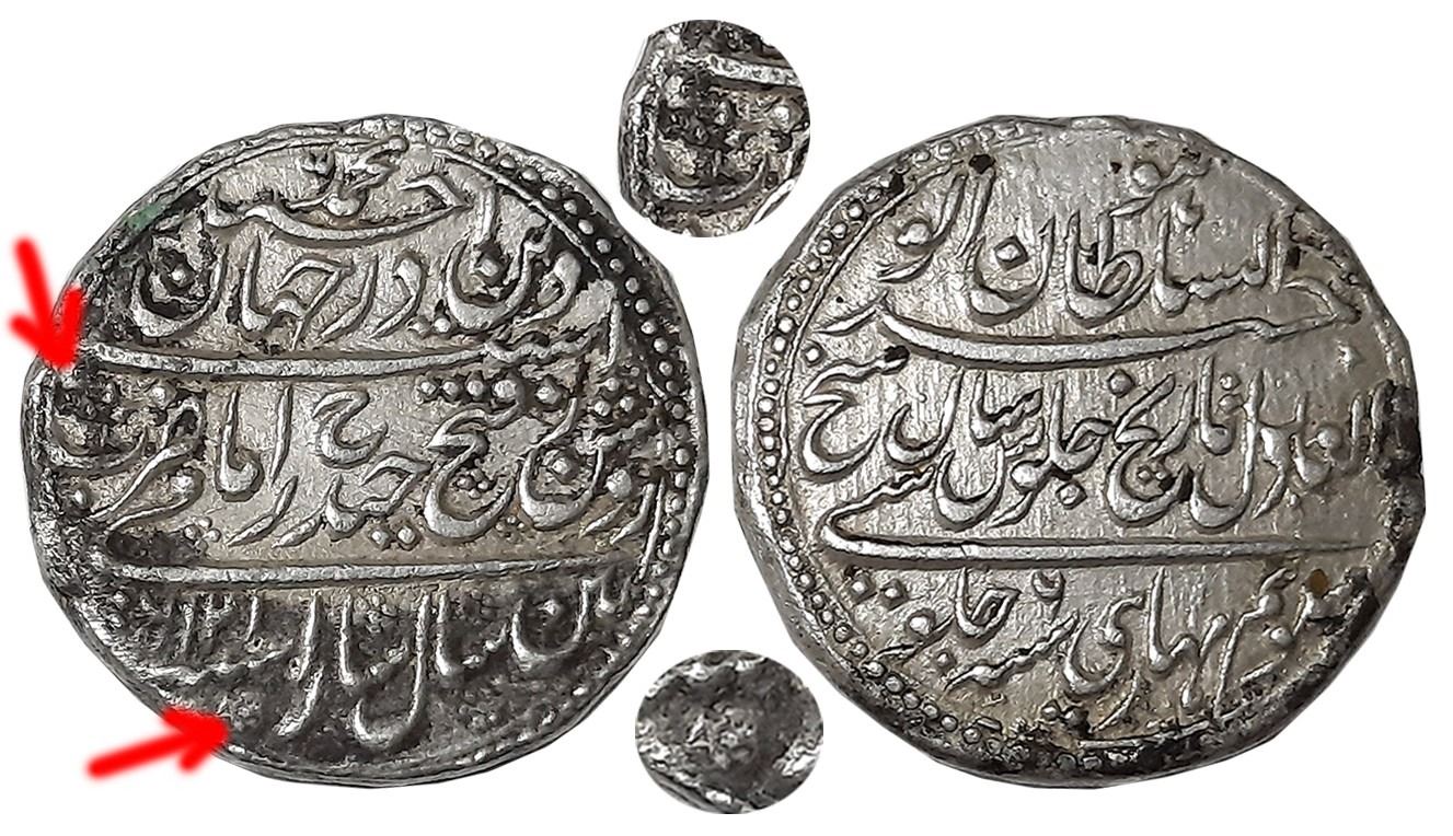 Tipu Sultan, Silver Rupee, 11.14g, Patan Mint, AM 1216 (retro) Sara/ RY 6, with additional Flower Mint mark (KM# 126). Very fine+, very rare.