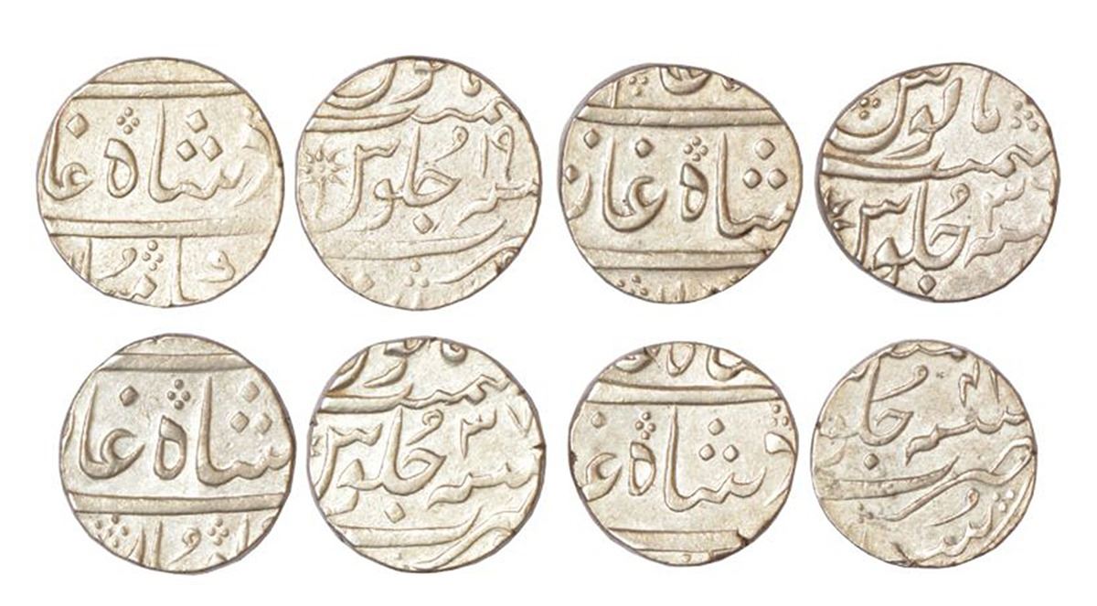 Nawab of Surat, silver rupee (4), Surat mint, in the name of Shah Alam II, RY 19, 36, 37 and 41, 11.55g, 11.56g, 11.47g and 11.52g respectively. (4 coins)