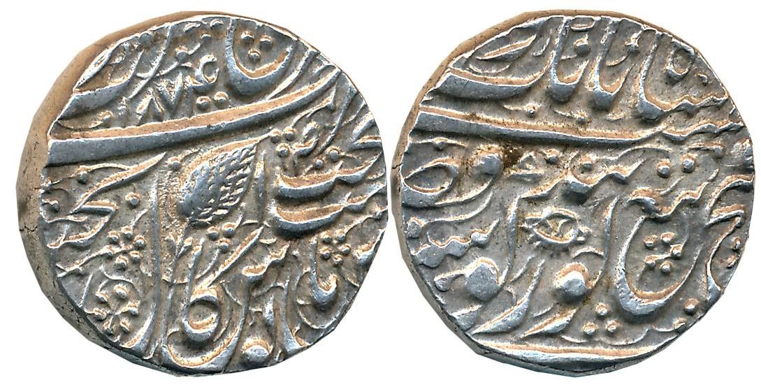 Ranjit Singh, Silver Rupee, 11.13g, “Guru Gobind” couplet, Amritsar Mint, VS 1874. Persian Suad on reverse above Takht (G.Singh# 01.41.01). Very fine+.