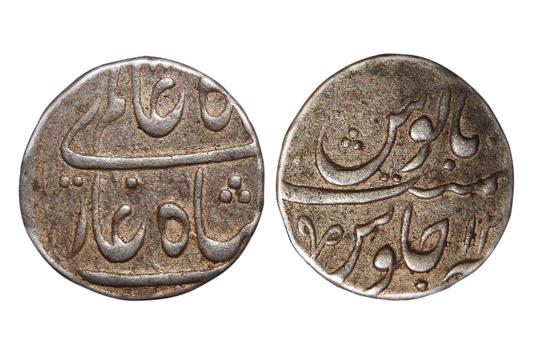 11.10grms, Minted at Muhiyabad urf Poona, RY12, n unusual rupee bearing the name “Shah Alam” instead