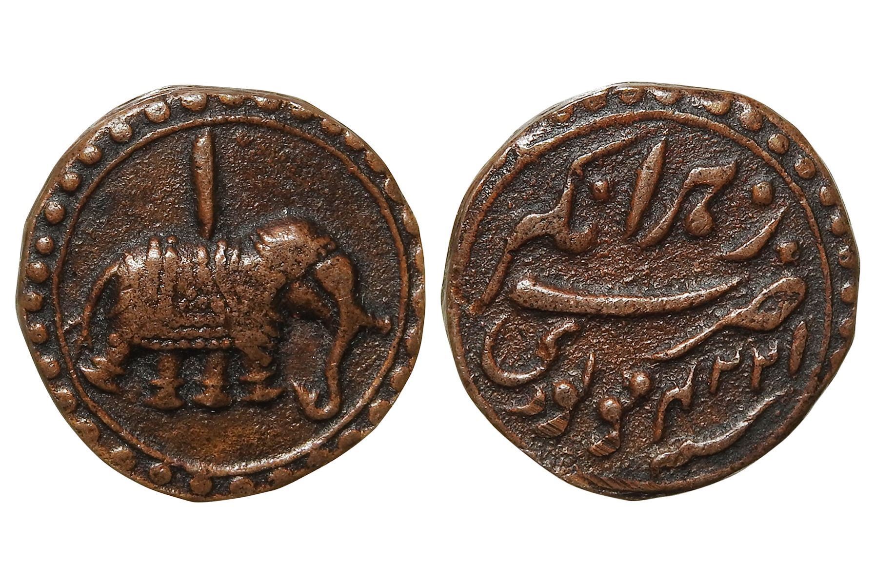 AD, Minted at Nagar(Shimoga), Obverse: Persian Alif added above the elephant, Reverse: Persian Zohra