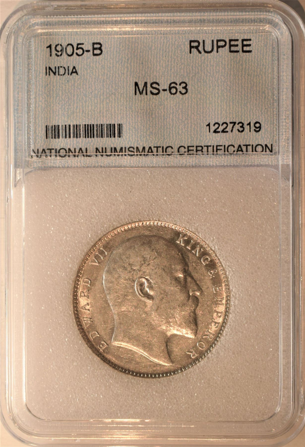India, 1 Rupee 1905-B MS-63 Certified by NNC