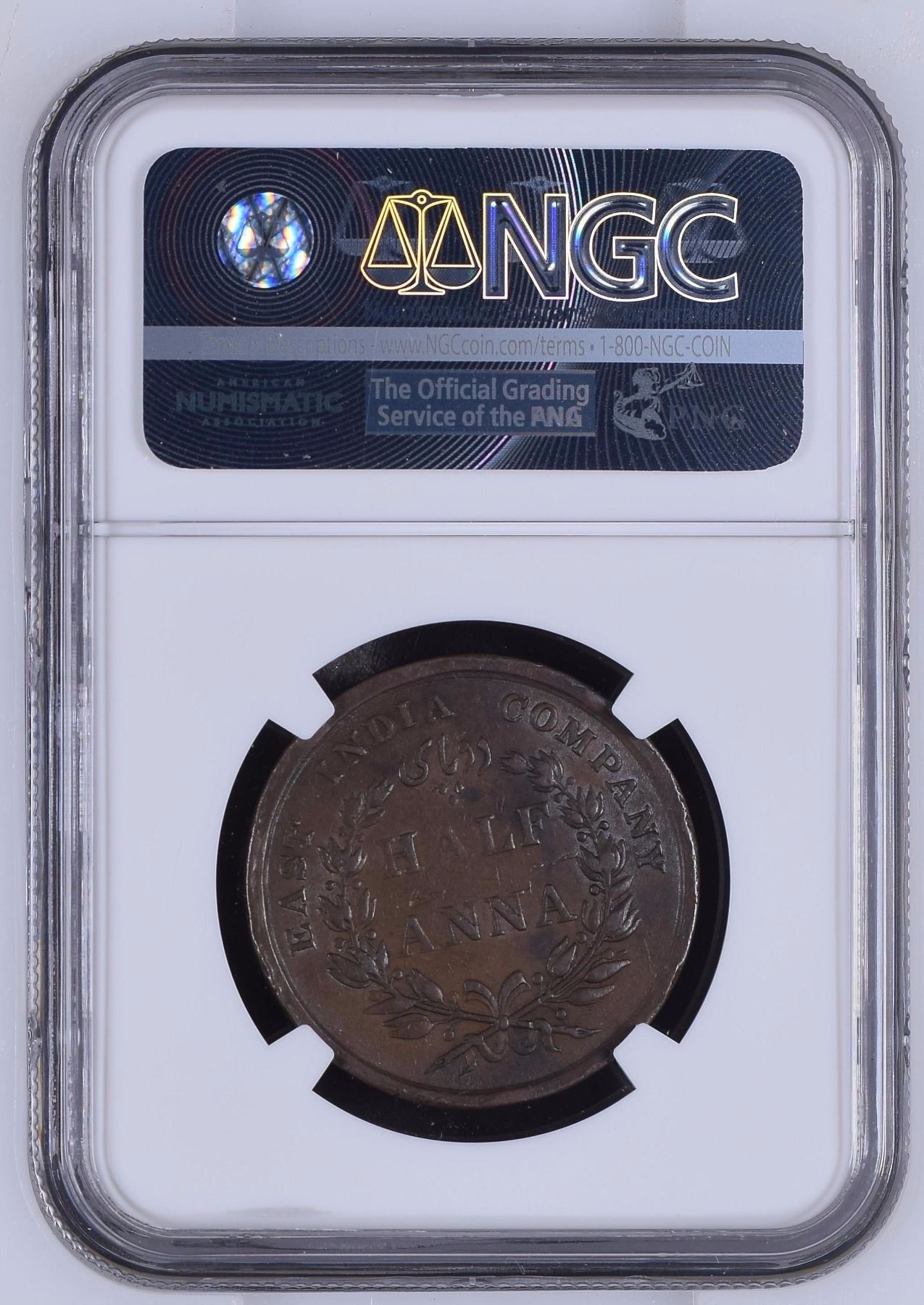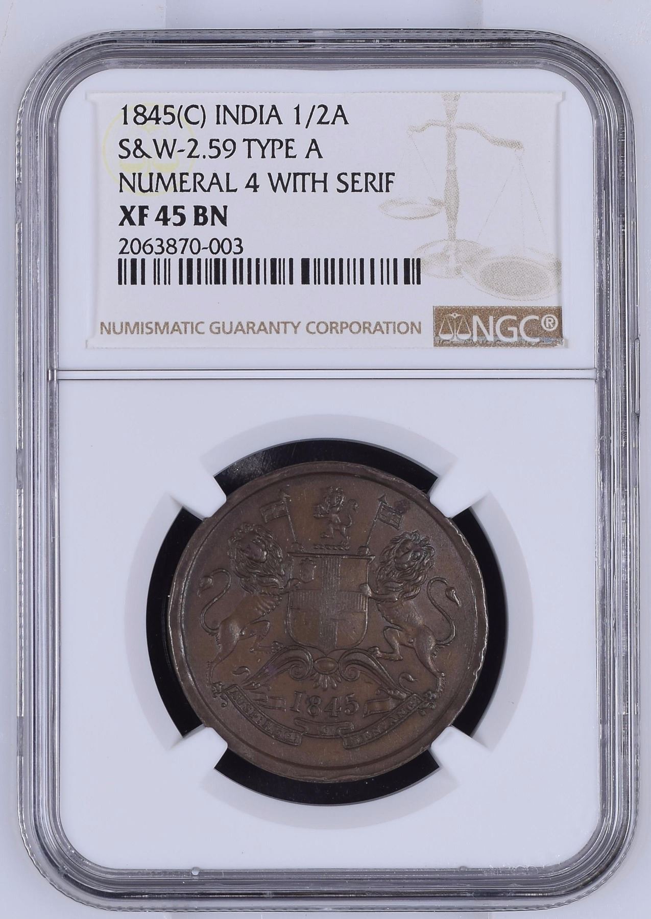 India 1845 C 1/2 Anna S& W-2.59 Type A Numeral 4 W/ Serif NGC XF45 Brown *ONLY 1 GRADED*