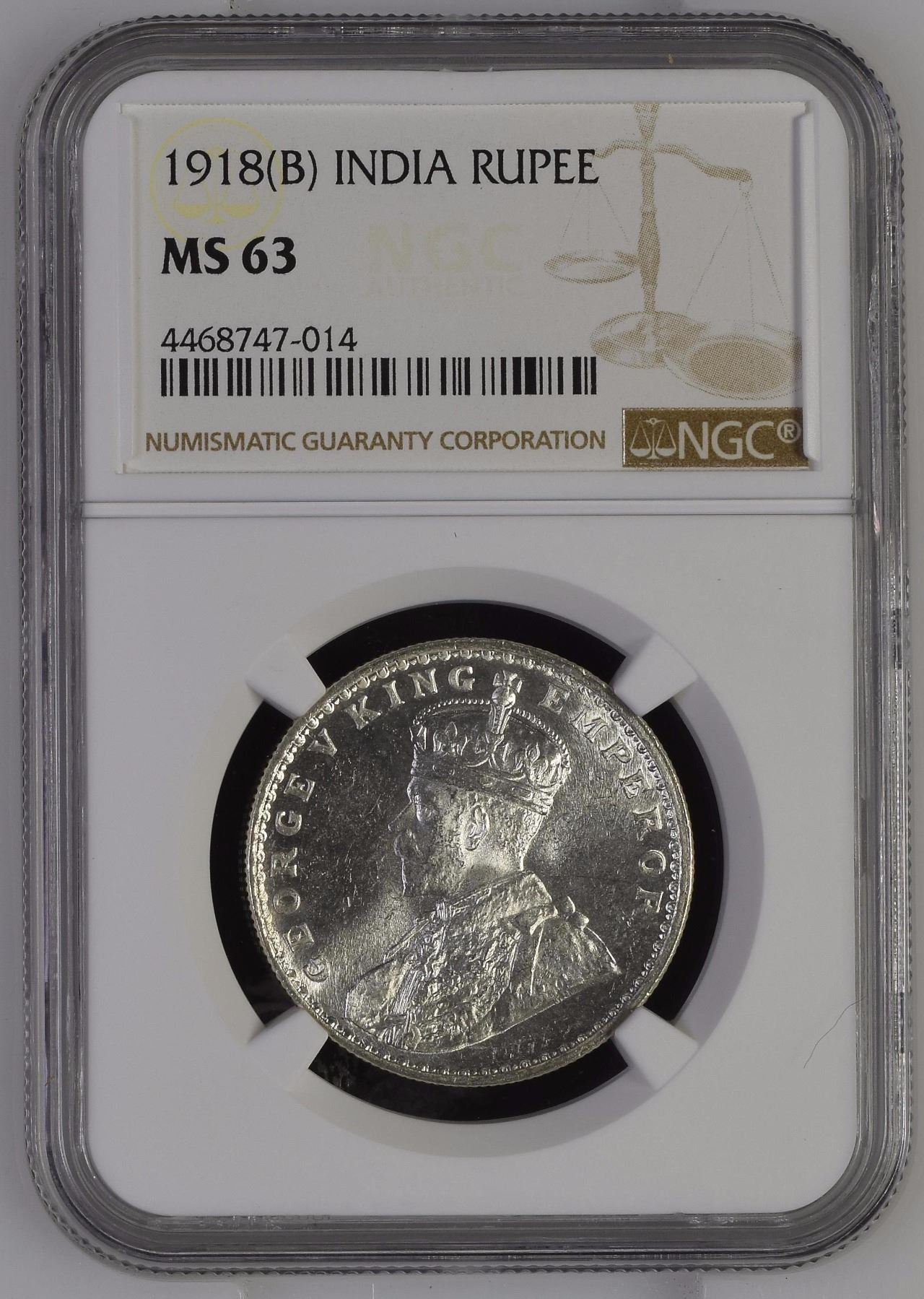 India 1918 B Rupee NGC MS63 *ONLY 49 GRADED*