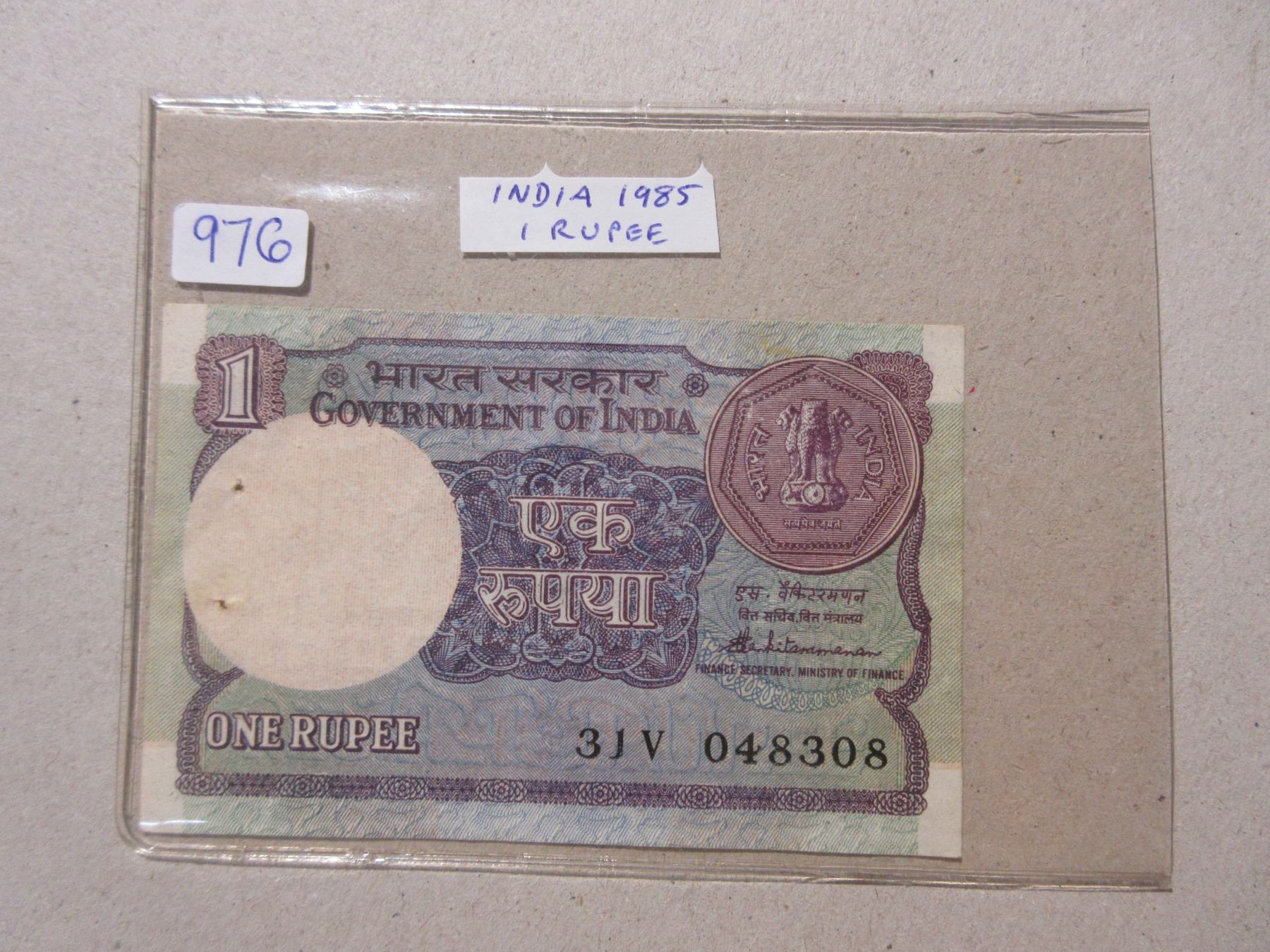 India. 1985 1 Rupee. VF+ with usual staple holes.