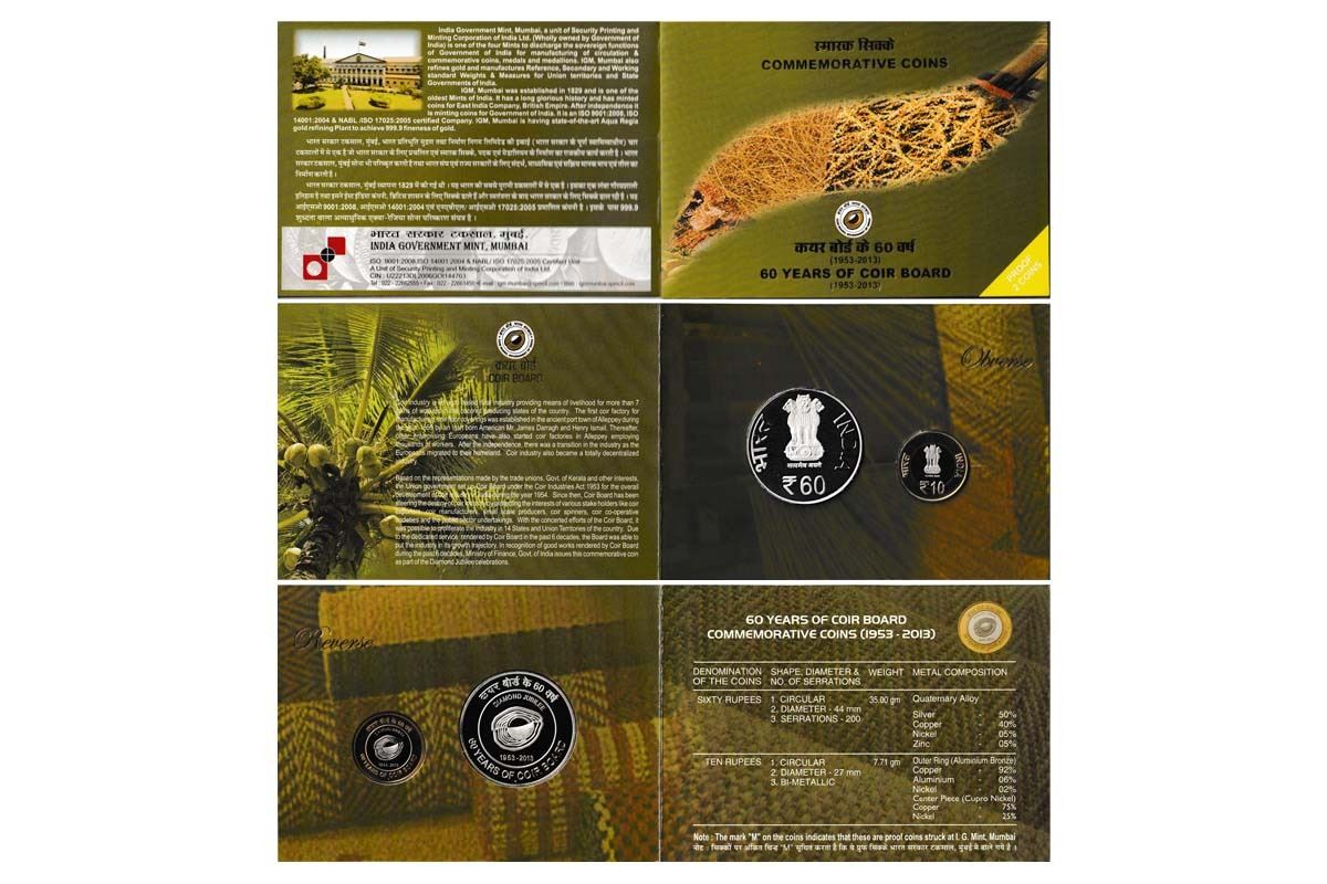 2014 Proof Set, 60 Years of Coir Board 1953-2013, Set of 2 Coins, Rupees 60 and 10. Immaculate condition with original packing (2).