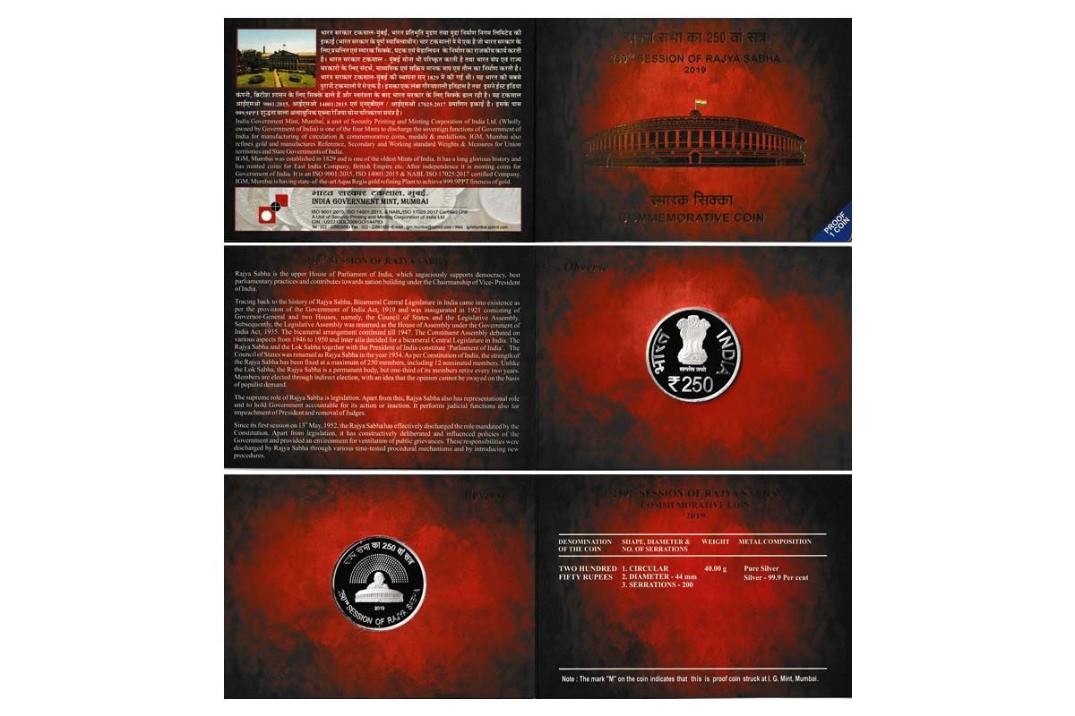 2019 Proof Set, 250th Session of Rajya Sabha, Single Coin, Rupees 250 immaculate condition with original packing (1).