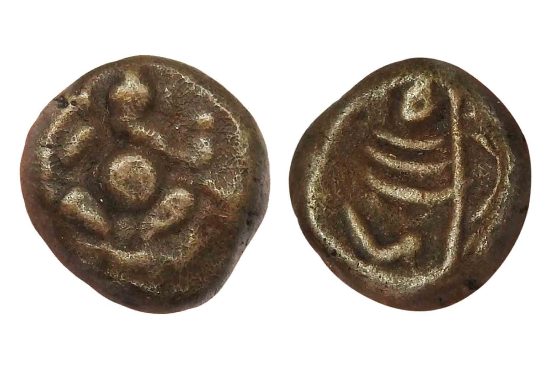 Arcot, Nawabs (c. 1720-1801), Copper Kasu, 1.60 grams, Obv. Ganesha sitting, Rev. “Wa la Jah” in Persian, Very Fine, Full Persian legend, Rare.