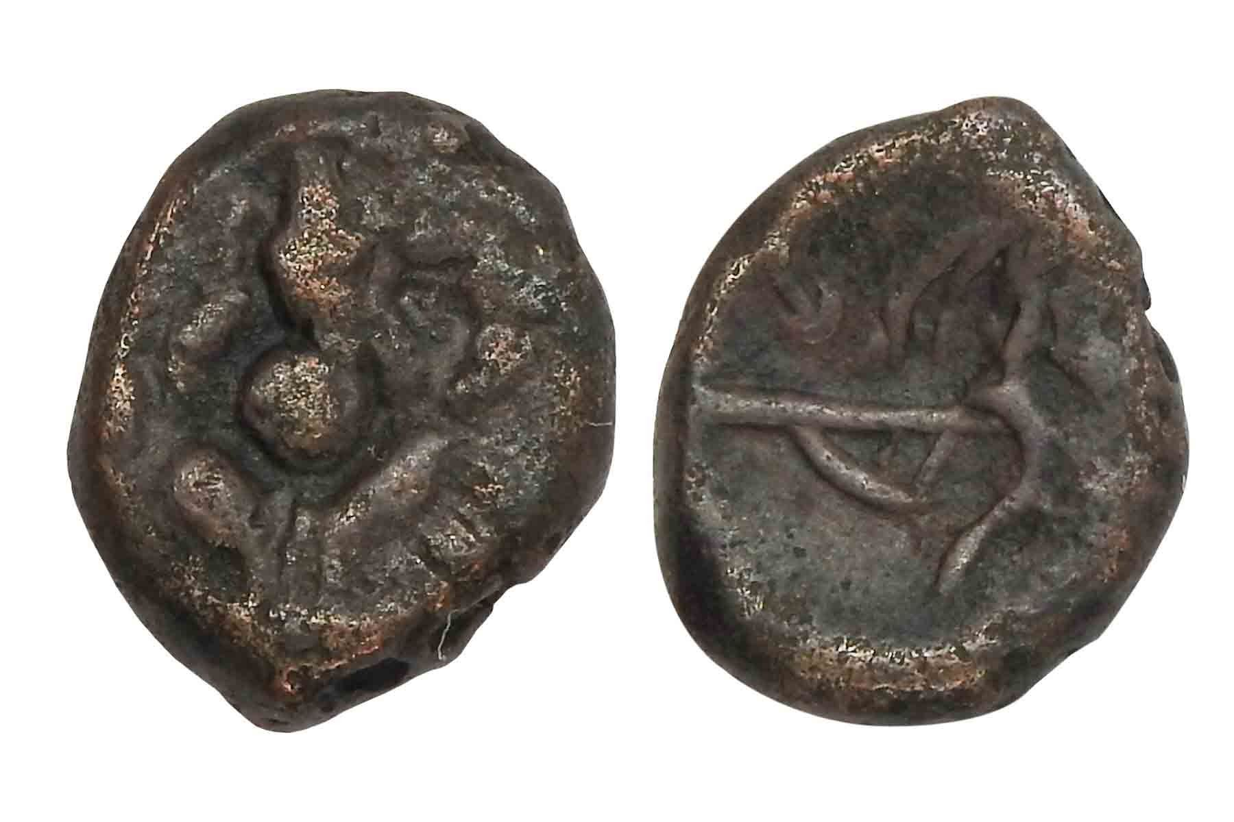 Arcot Nawabs, (c. 1720-1801), Copper Kasu, 1.40 grams, Obv. Ganesha sitting, Rev. “Wala Jah” in Persian, Very Fine.