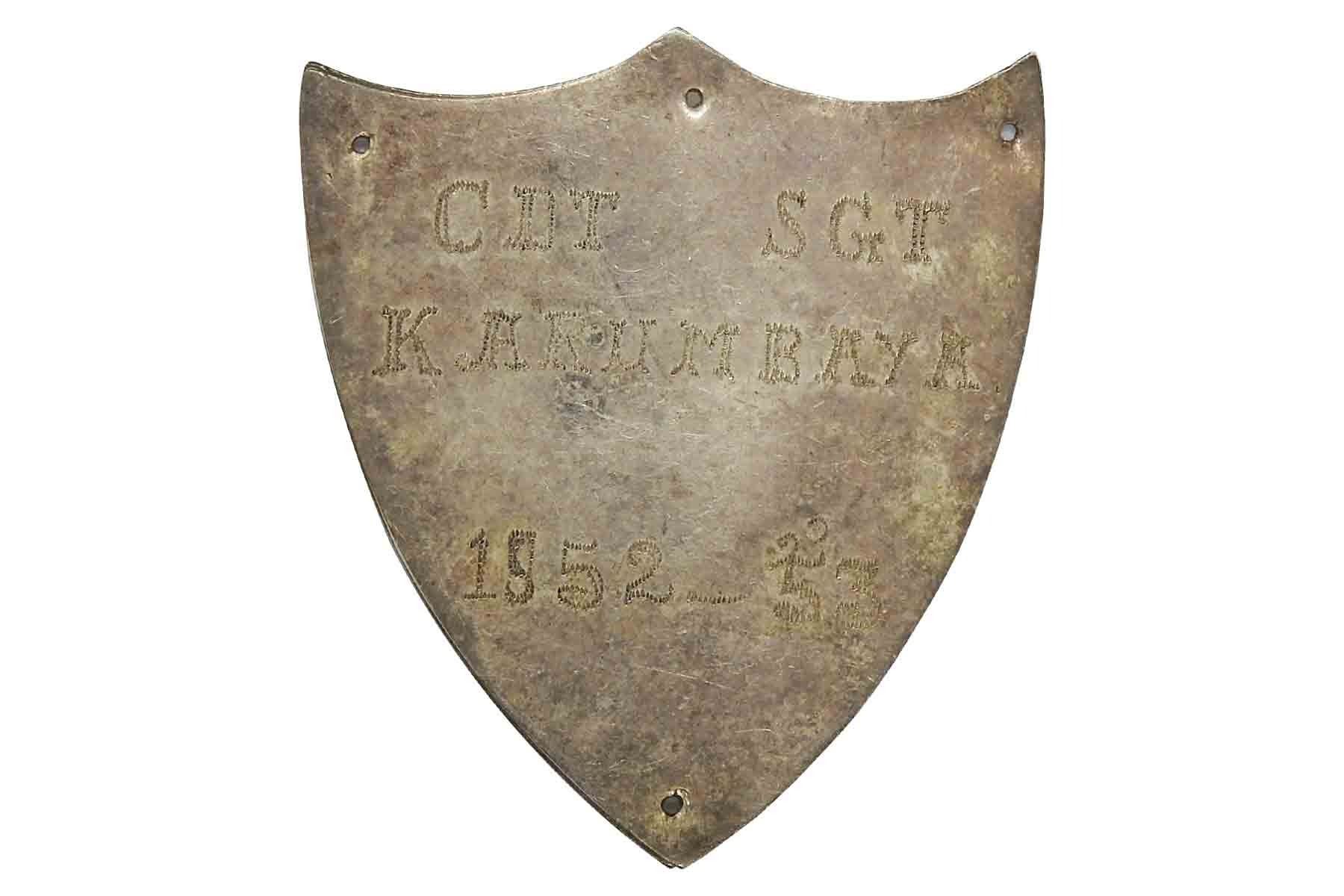 India, Armed Forces Medal, Silver, Obv. Name of Person awarded and year, Cdt. Sgt. Karumbaya, 1952-53, Rev. Blank, Scarce.