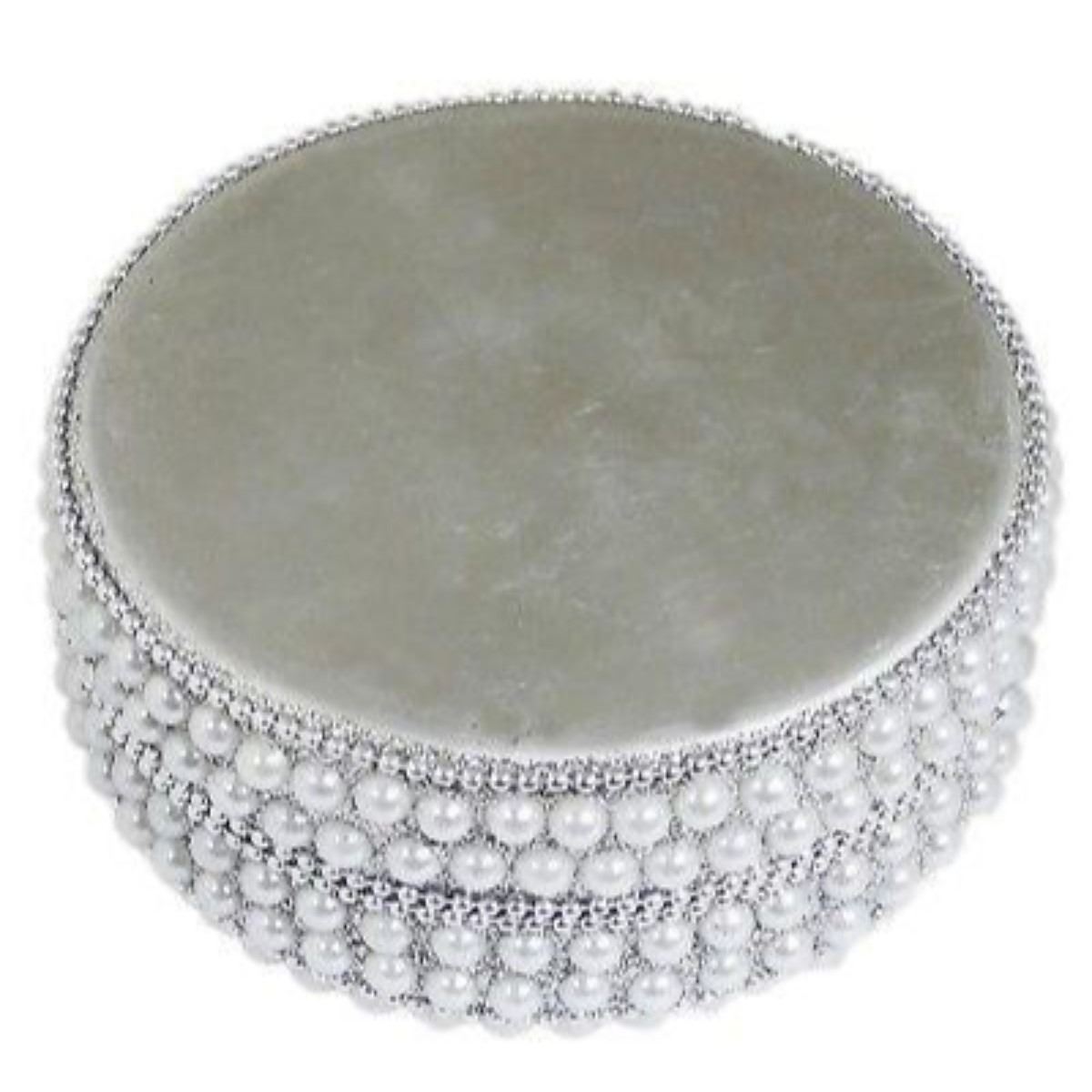Jaipur, India artisan beaded pearl & metal jewelry box trinket case. 4"D X 2"H. 9831-031618-EB-66126
