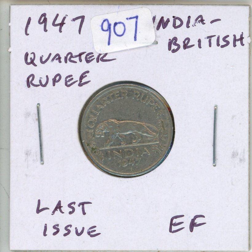 India – British. 1947 Quarter Rupee. Tiger. Last issue before Independence. EF.