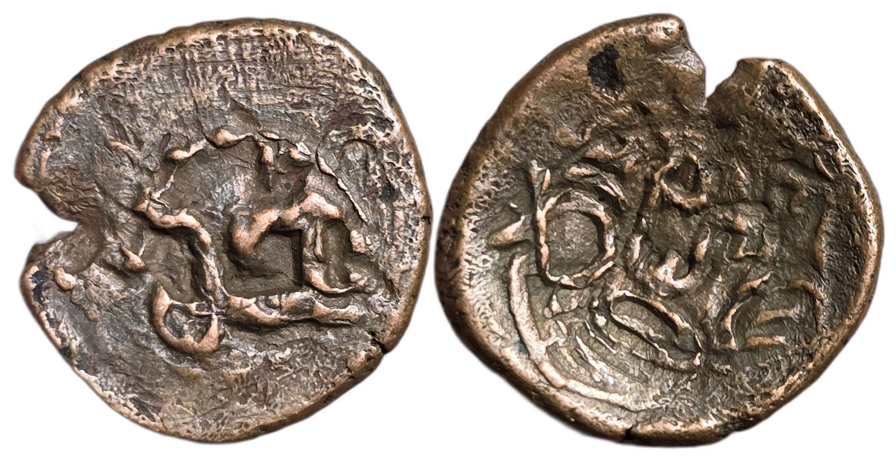 Chokkanatha nayaka – 1662-1682 CE. AE Unit, 1.57g, 14.93 mm. Obv: Seated deity/or an axe (not clear due to multiple strikes). Rev: Telugu/Kannada legend “Sri Chokkaâ€. Near VF, Scarce. Estimate: $ 60-80