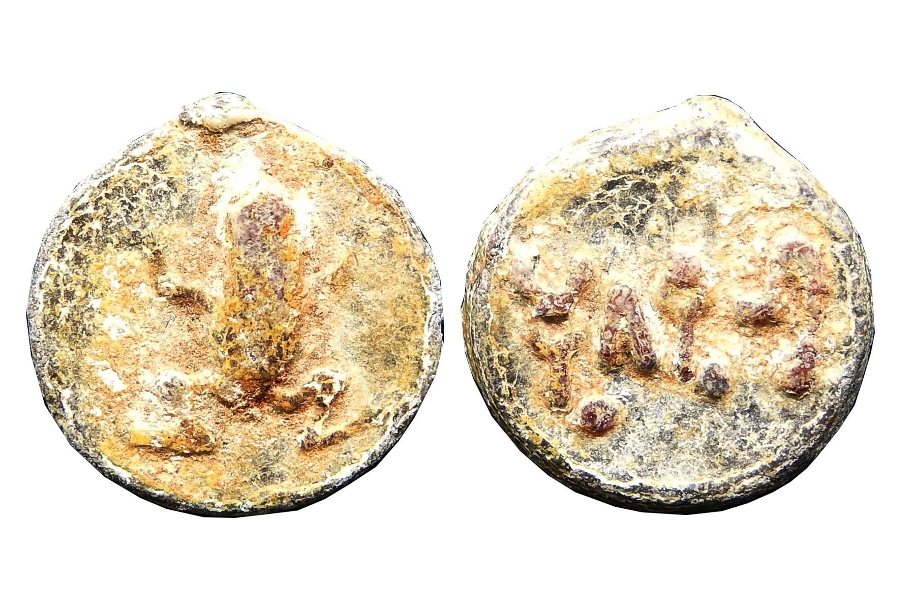 City State of Mughmuke (c. 200 BC), Erich Region, Lead Half Unit, 3.30 grams, Obv. Frog Symbol, Rev. Brahmi legend ‘Mugamukh’. (Pieper - 515; M.L.Gupta nos. 54-55) Extremely Fine.