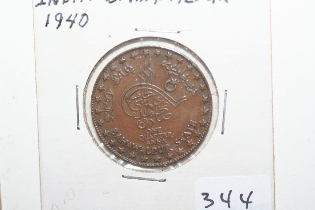 This lot is a 1940 india bahawalpur 1/4 anna coin