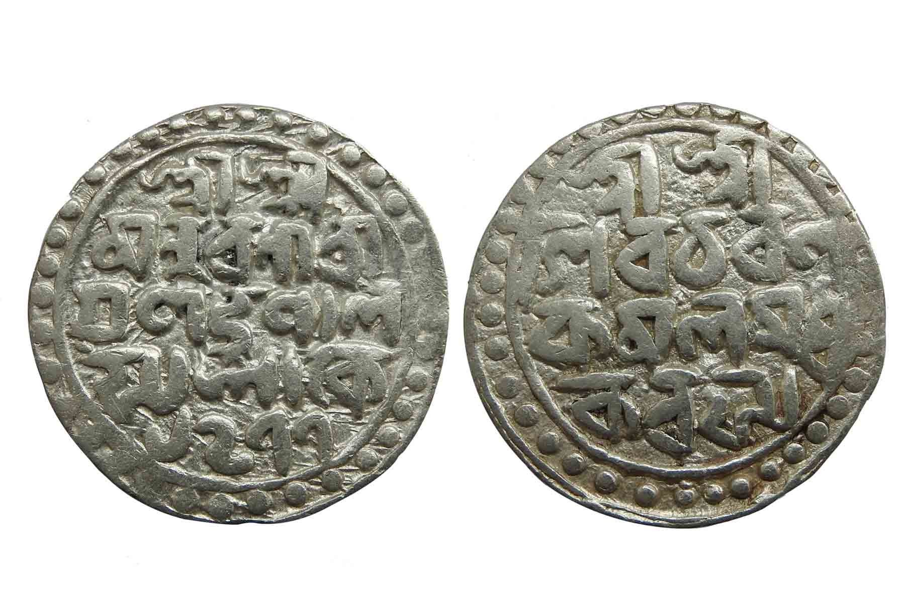 Cooch Behar, Nara Narayan (c. 1555-1587, SE 1477-1509), Silver Rupee, 10.60 grams, Obv. Sri Sri / man Naranara / yana Bhupala / sya sake / 1477 (1555 AD) in Bengali, Rev. Sri Sri / Siva Charana / kamala madhu / karasya in four lines in Bengali, (KM 34), Very Fine, Rare.