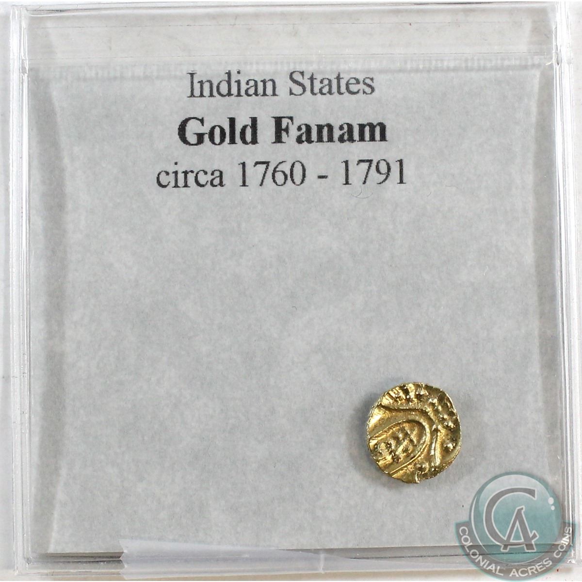 India Gold Fanam of Cochin-Malabar Coast Circa 1760-1791 with information display card.