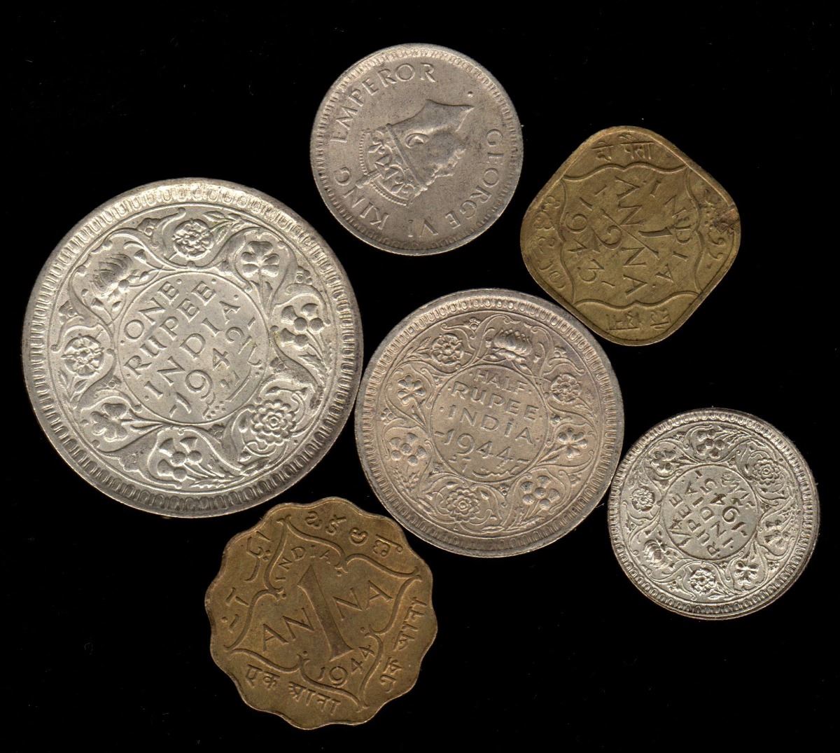 India, Half Anna to Rupee, George VI, 1942 to 1945