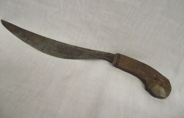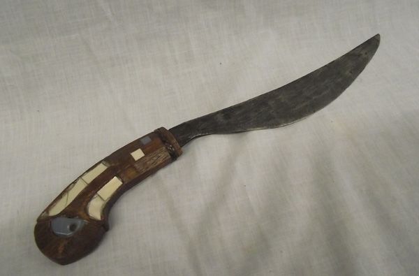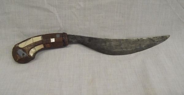 India Inlay Mother of Pearl Handle Sickle Knife. Measures 12.5 end to end. Blade measures 8''L, Few Mother of Pearl inlays are missing on handle.