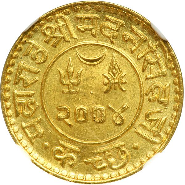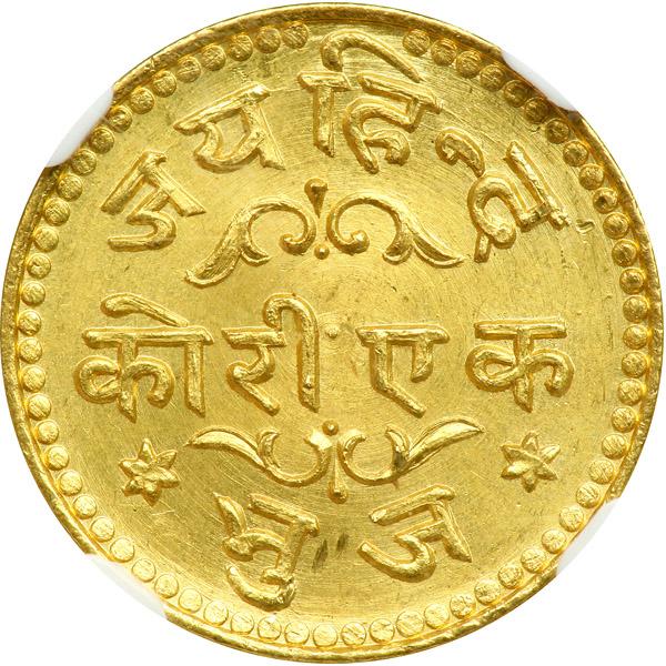 India - Kutch. Kori, VS2004 (1947). Fr-1281; KM-M7. Madansinghji, 1947-1948. Coronation issue. Inscriptions in Nagari both sides. Very Scarce. NGC graded MS-64.