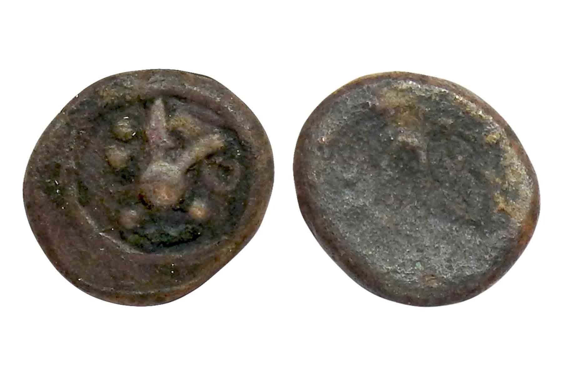 Madurai Nayakas (c. 1601-1736), Copper Kasu, 1.10 grams, Obv. Ganesha in a dancing posture. Rev. Blank, Fine, Rare.