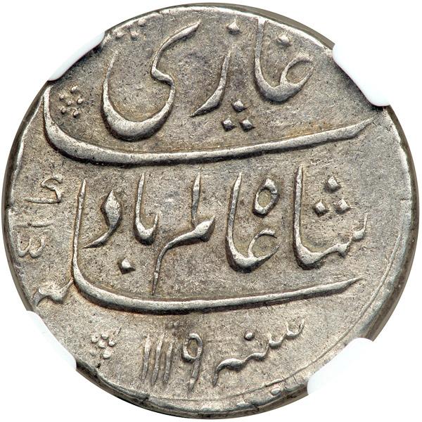 India - Mughal. Rupee, AH1119 Year 1. NGC EF45
