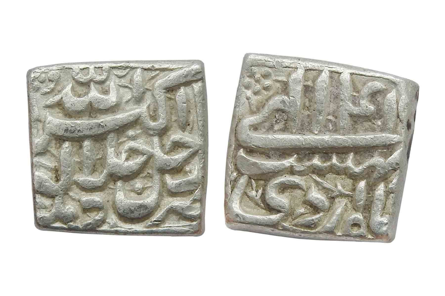 Muhammad Akbar, (c. 1556-1605 AD), Silver square Rupee, 11.40 grams, Delhi Mint, Obv. Jalle Jalalahu Allahu Akbar, Rev. Ilahi date 41, month Ardibisht, Very Fine, Scarce.
