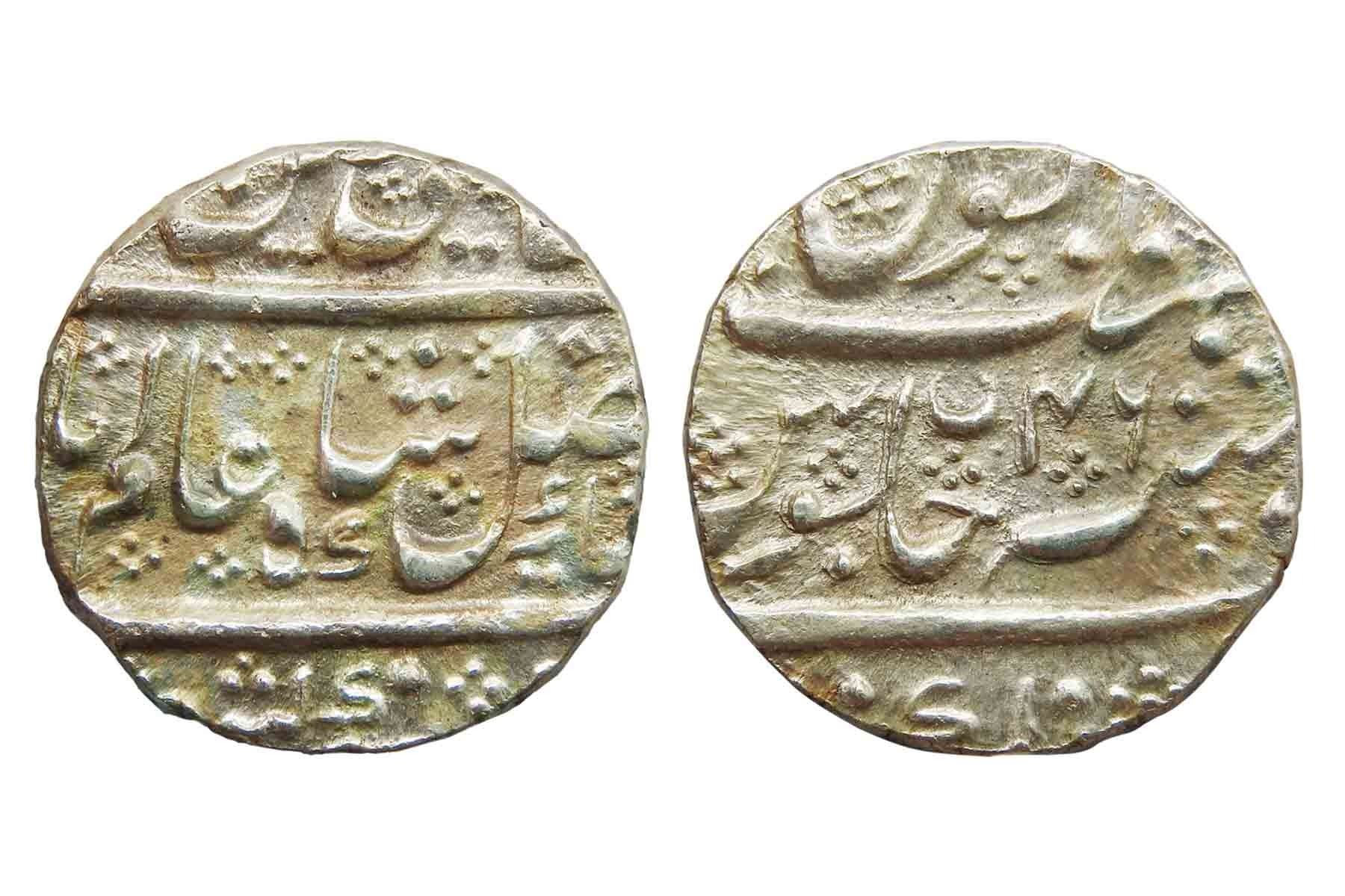 Mysore, Dewan Purnaiya, regent, (c. 1799-1810), in name of Shah Alam II, Silver Rupee, Nagar Mint, 11.40 grams, RY 46, Obv. Ruler’s title Saya-e-fazle elah Couplet “Sikka zad bar haft kishwar saya-e-fazle elah, hami-e-dine Muhammad, Shah Alam Badshah“, Rev. sana 46 julus & Zarb Nagar at the bottom, (KM C#207a), Very Fine+, Scarce.