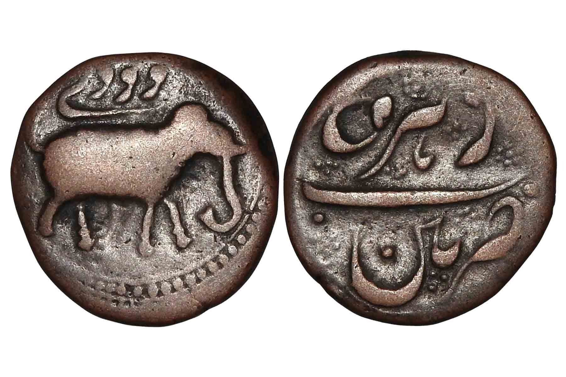 Mysore, Tipu Sultan (c. 1782-1799 AD), Copper Paisa, Patan Mint, 10.80 grams, Obv. Elephant towards the right, Persian legend above, Rev. Zohare Zarb Patan Mint name at the bottom, (KM 122.4), Very Fine, Scarce.