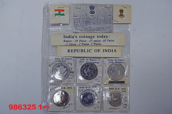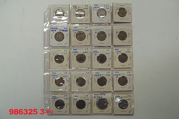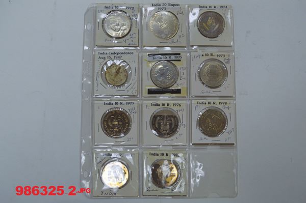 India. Includes Silver 50, 20, 10 Rupees (5) plus many nice CN 10 Rupee commemoratives. Long date and mint runs of the minors. Mostly Very Fine to Uncirculated. Just over 270 pieces.
