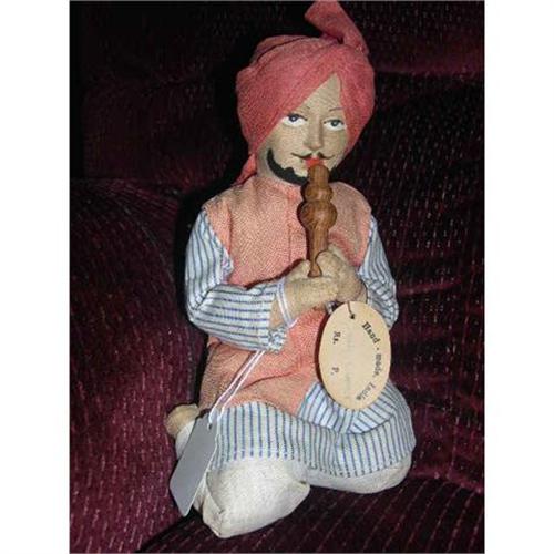 8" handmade in India Snake-Charmer. Paper tag says Hand-made, India Rs.P. He is all original and has a molded cloth face. There is just a slight soil to the white of the pants where he is resting on his legs. He is from a smoke free environment. Buyer to pay $10 for shipping, insurance and handling. Thanks for viewing.