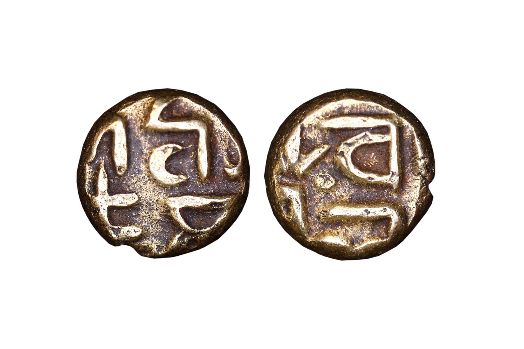 Vijayanagar Empire, Uncertain Gold Fanam, 0.40grms, uncertain Nagari legend on both sides. Unlisted in Mitch & Ganesh. Extremely Fine, Very Rare.