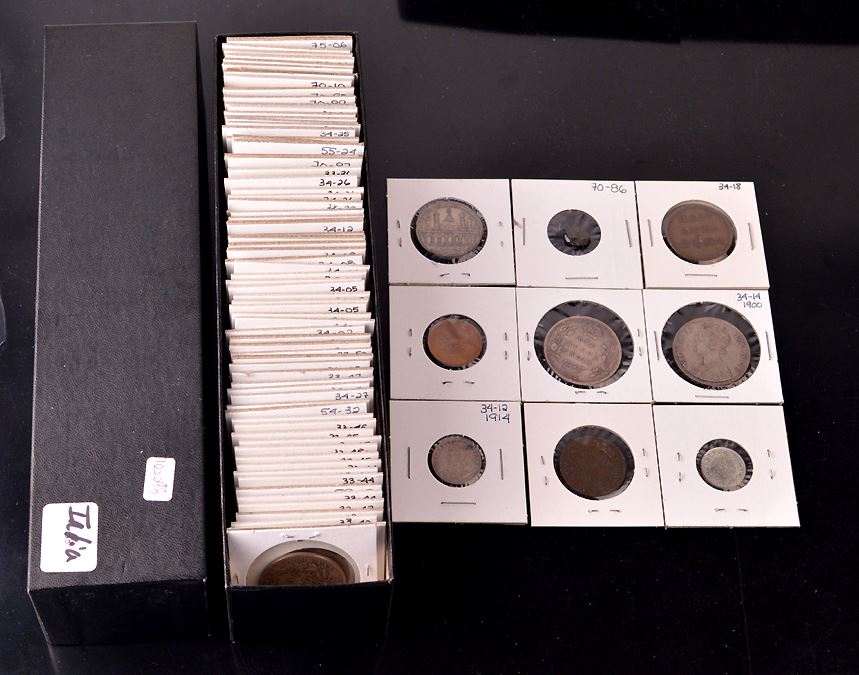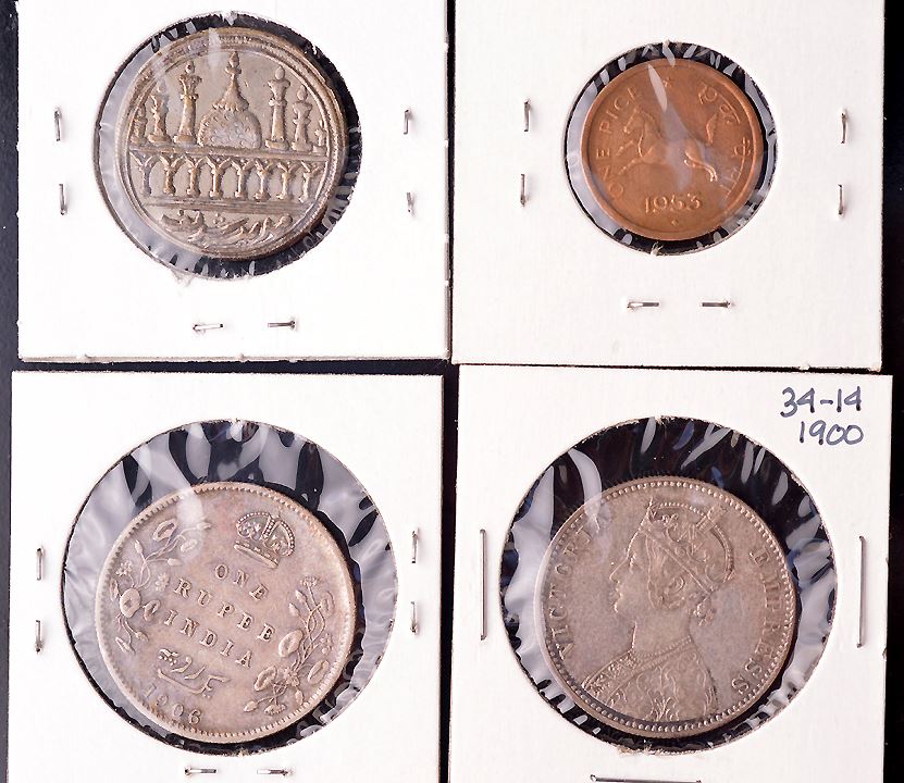 East India Company, 1/4 Anna, 1832, (2); 1833; 1835, (11); 1858; Half Anna, 1835, (5); 2 Annas, 1841, (2); 1/4 Rupee, 1840; Rupee, 1840, (2); British India, 1/12 Anna, 1862; 1876; 1924, plated; 1/2 Pice, 1862; 1893; 1917; Pice, 1952; 1953; both Unc; 1/4 Anna, 1862, (3); 1875; 1876; 1883; 1889; 1913; Anna, 1907; 2 Annas, 1862; 1877; 1879; 1894; 1/4 Rupee, 1914; 1918; 1944; Rupee, 1890; 1900; 1906; India Princely States, Bangal, Bombay and Madras Presidency, 1794 to 20th century,(32); grades range from Fair to EF, most VG to Fine. Total of 84 pcs. Should be viewed.