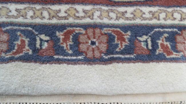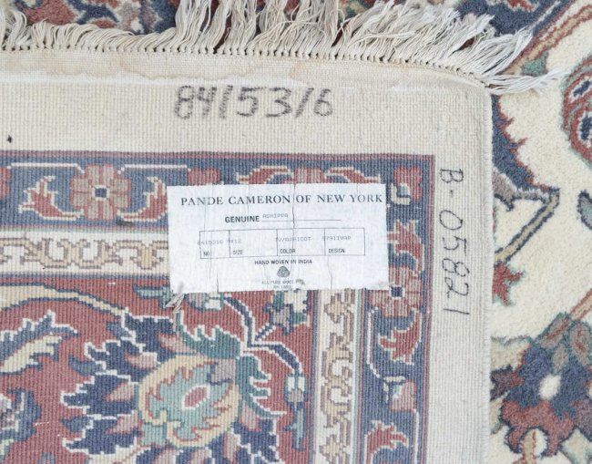 Indian Agrippa wool rug. Hand-woven. Original label. [Approx: 9' x 12']. Light staining throughout.