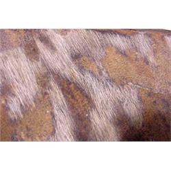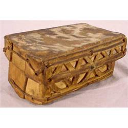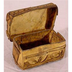 Native American or Inuit cut hide box, Ca. 1880; unusual cut and sewn hide box (probably seal) with remnants of hair; overall condition is good yet dirty and fur (hair) is worn off.