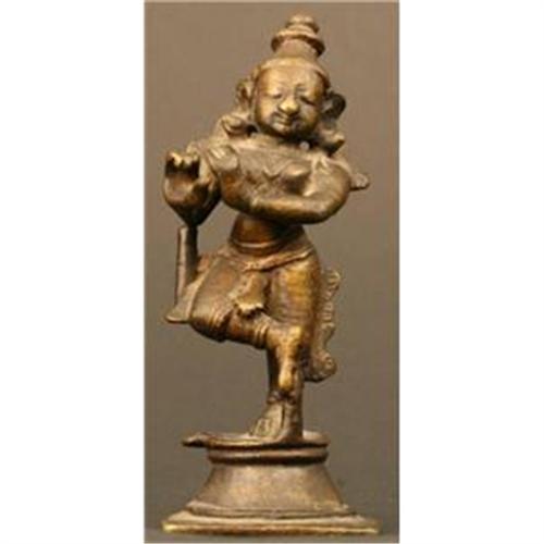 <tr><td><font size="2" face="Arial, Helvetica, sans-serif"><strong><font color="#000033">Title:</font></strong>Indian Antique Bronze Krishna Fluting Sculpture</font></td></tr>