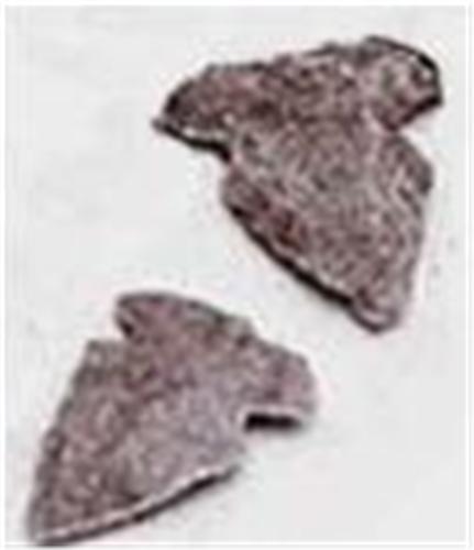 Arrow heads—or, more properly, projectile points—are the stone, metal, bone, or antler components of prehistoric weaponry designed to penetrate and impart a lethal wound. Most of the arrowheads were made of stone, manufactured by means of percussion and pressure flaking. The process of stone flaking (or knapping), in which a stone is gradually diminished in size until the desired shape is obtained, required great skill, which could be developed only through long practice. Stone Points - Arrow heads These inexpensively priced points, knapped from light gray colored Stone, average 1-1/4” to 2” in length and are great for arrow making or display purposes.