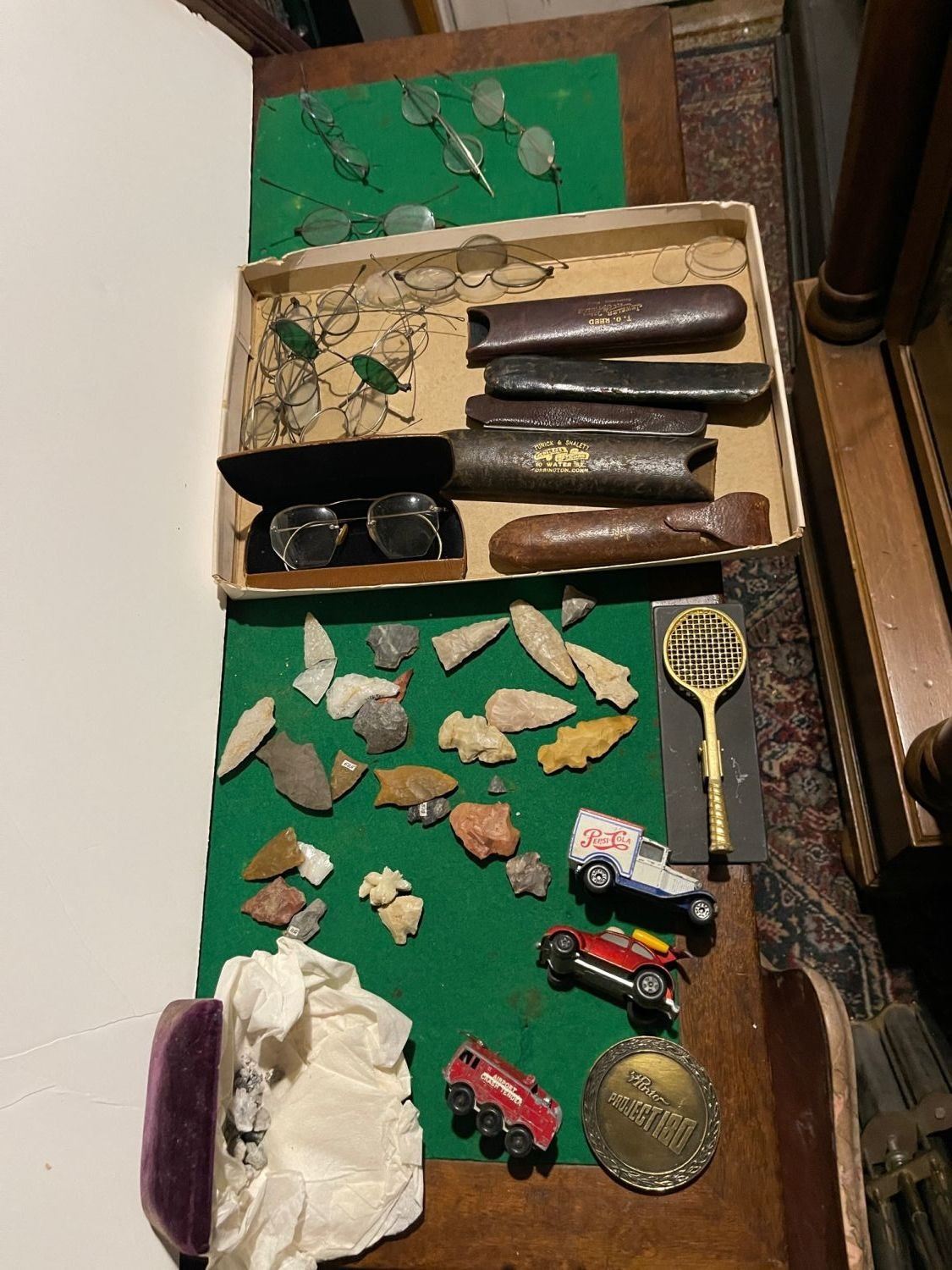 Indian Arrow heads early glasses etc