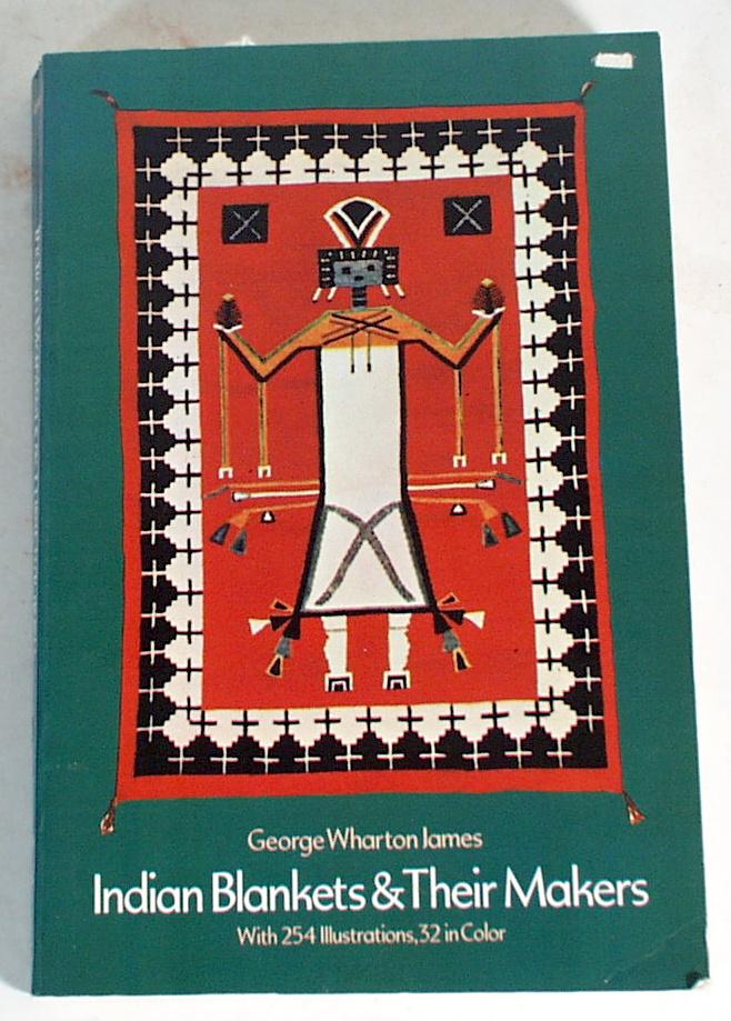 Indian Blankets and Their Makers by George Wharton James with 254 illustrations, 32 in color. Paperback. 213 pages. First published in 1974, this edition is an unabridged republication of the 1920 edition.Very good condition. In this book the author of Indian Basketry continues his discussion of Navajo weaving traditions with an examination of their blanket manufacture. Size: 6" x 9"
