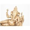 Indian bronze figure featuring Ganesh firstborn of Shiva and Parvati, represented with a head of elephant with a broken tusk, protruding stomach and four arms and reclining on a bed. 28 x 25 x 11.5 cm (11.02 x 9.84 x 4.53 inches), 5.13 kg. PROVENANCE: Private collection, Italy