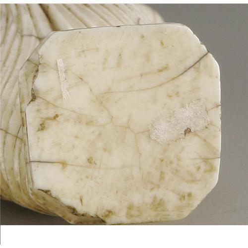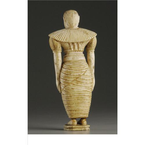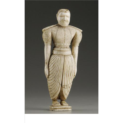 <B>An Indian Carved Ivory Figure</B></I><BR><BR>Unknown maker, India<BR>Nineteenth Century<BR>Ivory<BR>Unmarked<BR>5.5 in.<BR><BR>Of an attendant or officer standing at attention on a champfered base1 <BR><BR><B>Condition Report:</B> Wear commensurate with age and old repair to ankles