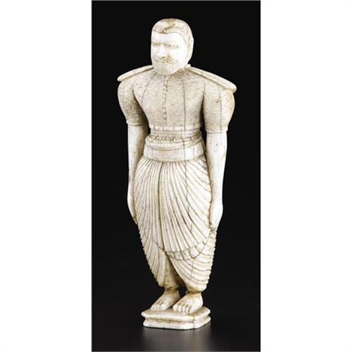 <B>An Indian Carved Ivory Figure</B></I><BR><BR>Unknown maker, India<BR>Nineteenth Century<BR>Ivory<BR>Unmarked<BR>5.5 in.<BR><BR>Of an attendant or officer standing at attention on a champfered base.<BR><BR><b>Shipping:</b> Requires 3rd Party Shipping (<a target="_blank" href="http://www.heritageauctions.com/common/shipping.php">view shipping information</a>)