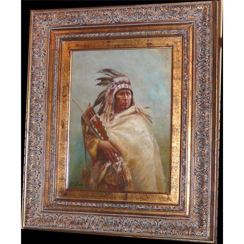 The dignity and majesty of a Native American. Handsome details. Gorgeous frame. Signed by N. Bingham.