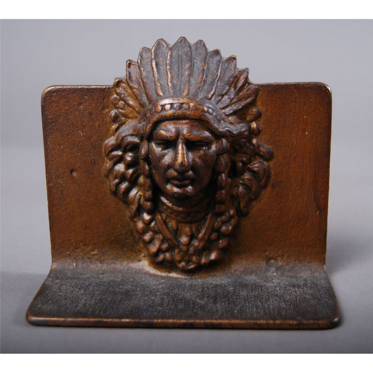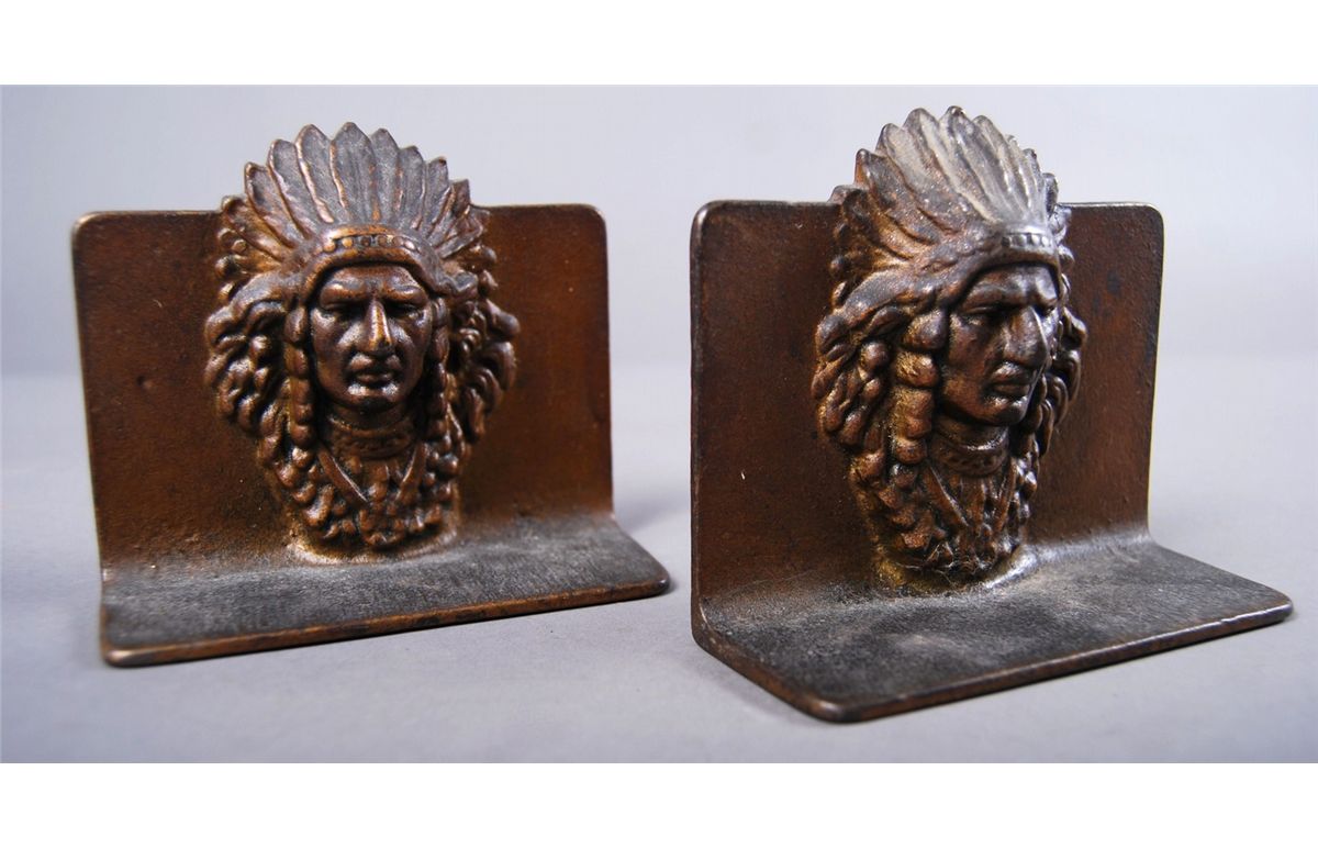 Indian Chief Bronze Book Ends [Height/Length (in)= 3.75, Width (in)=4.25, Depth (in)=1.75, Weight (lbs)=1.25] With Pangaea Auctions C.O.A. Go to: www.pangaea-auctions.com for more information about this collection.