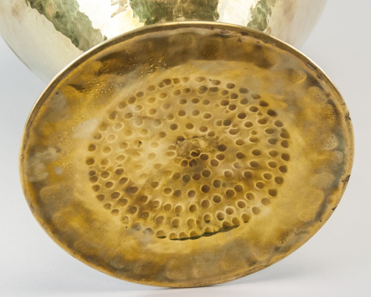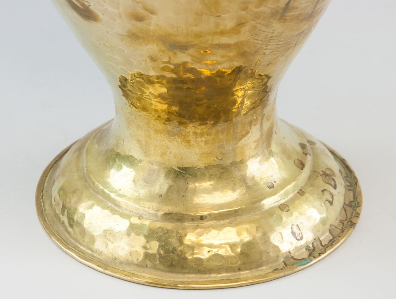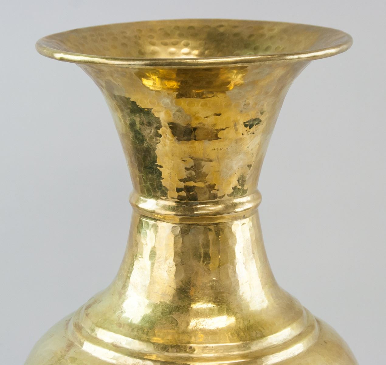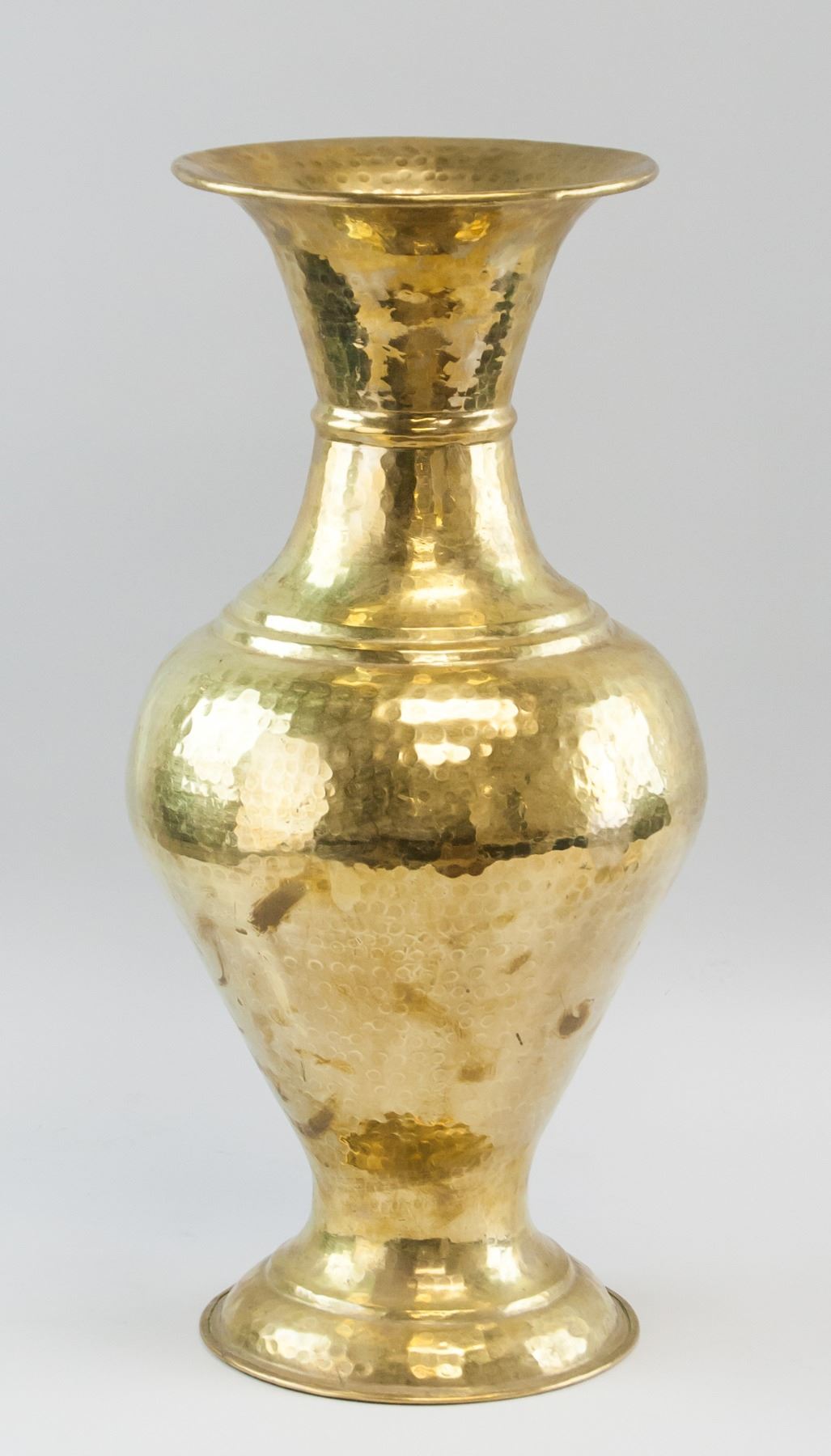 Indian copper and gilt vase. Handmade. Of wide opening and wide base, in an hour-glass shape. 52 x 26 cm, 2670 grams