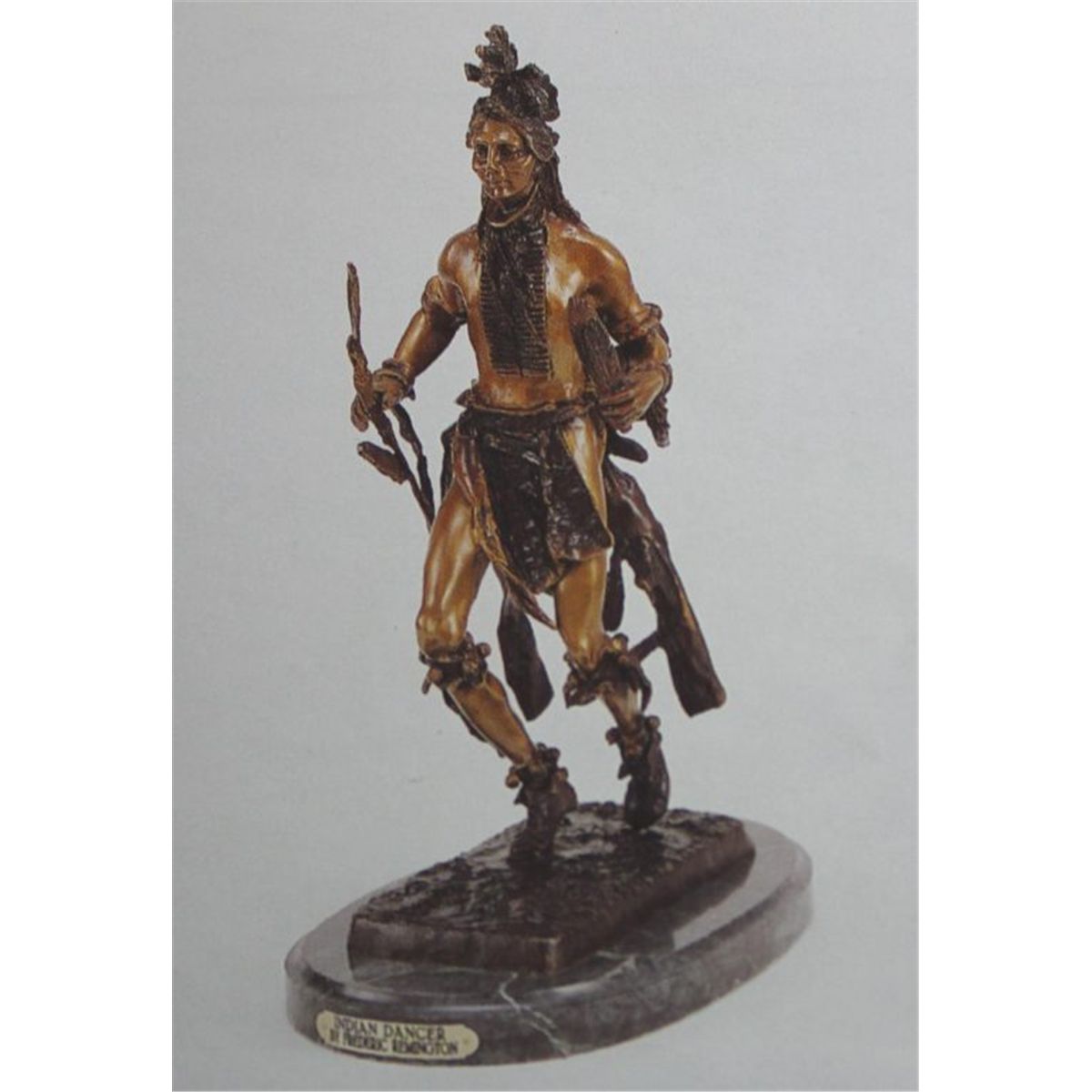 "Indian Dancer" Bronze Sculpture - After Remington - Museum Brown Patina - Mounted On A Fine Italian Marble Base - Beautifully Detailed - Signed - Mint Condition - 56"H - Lost Wax Cast Bronze