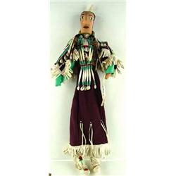 Large Indian Doll. Complete With Beadwork, Dentalium Shells, Feathers & Fur. 34" Tall Est $350 - $550.